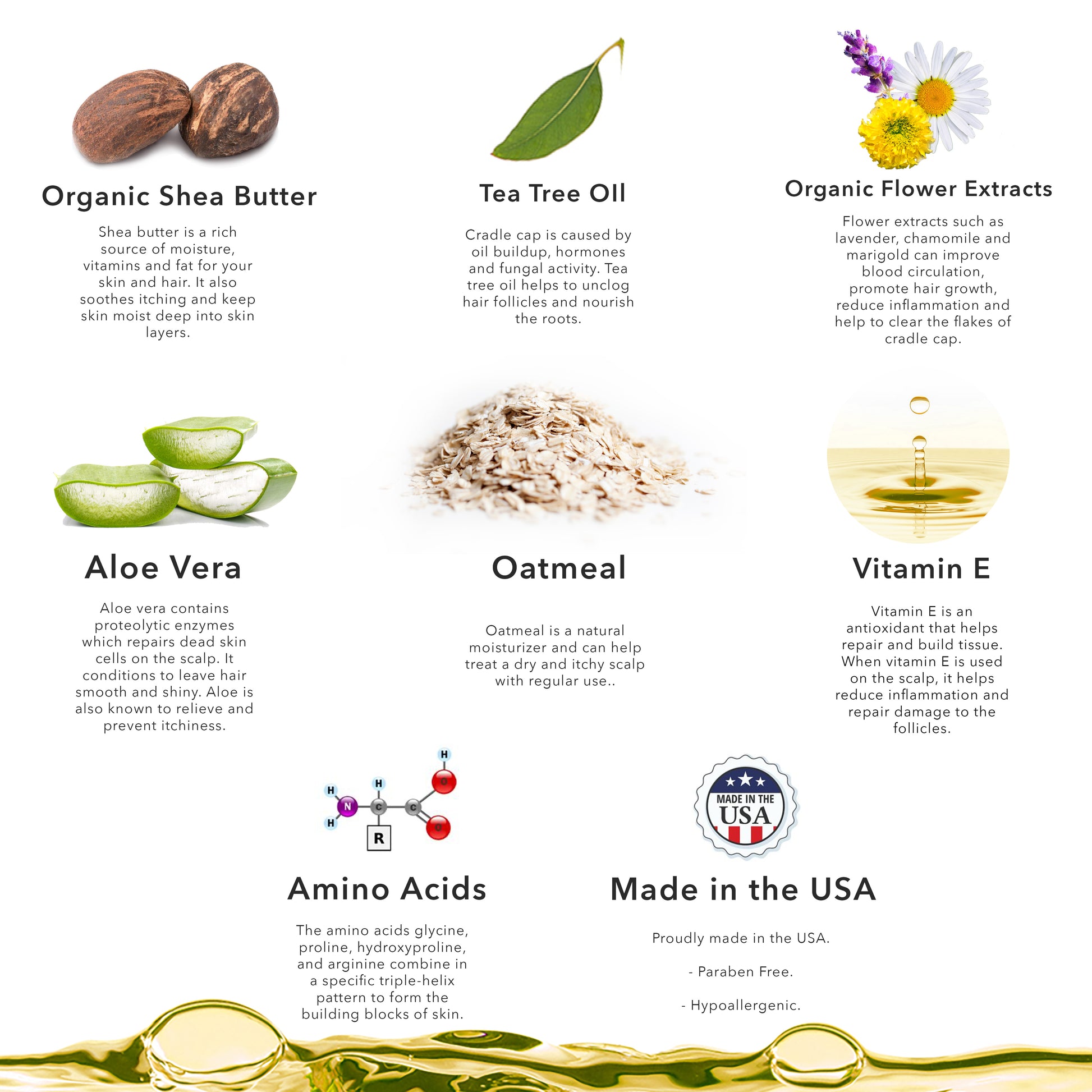 Cradle Cap is for dry, flaky skin on the scalp, a common occurrence with babies. Bella B Bee Gone Cradle Cap shampoo is specially formulated with: oatmeal, vitamin E, organic shea butter and aloe vera, as well as, several organic flower extracts and pharmaceutical grade tea tree oil. Excellent as a daily shampoo to maintain a very soft and healthy scalp. Hypoallergenic formula that is free of parabens (artificial preservatives). Very light, fresh scent. Use daily or as needed.