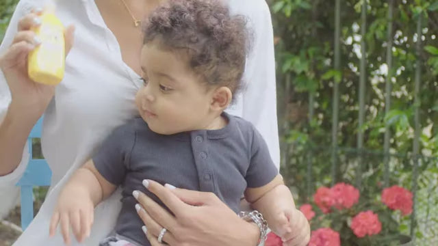Naturally protect baby and the whole family from biting insects and irritation. Free of deet and other chemicals. Won't sting or irritate the skin. Sprays and rubs in easily. . Contains geranium, lemon, cedarwood and citronella oils. Chemical free, non-irritating, hypoallergenic and paraben free. TSA Travel size approved (3.3 oz/98ml)