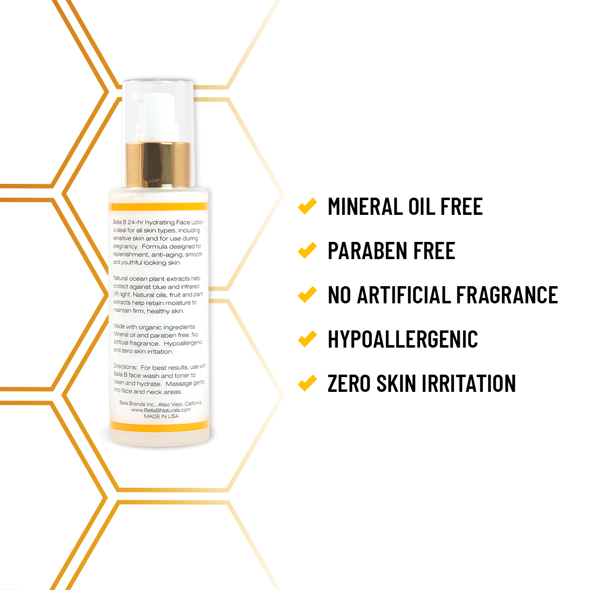 CLEAN SKINCARE - Bella B products are all natural and made with premium organic ingredients. This organic face moisturizer for women is free of animal by-products, petrolatum, lanolin and harsh chemicals.