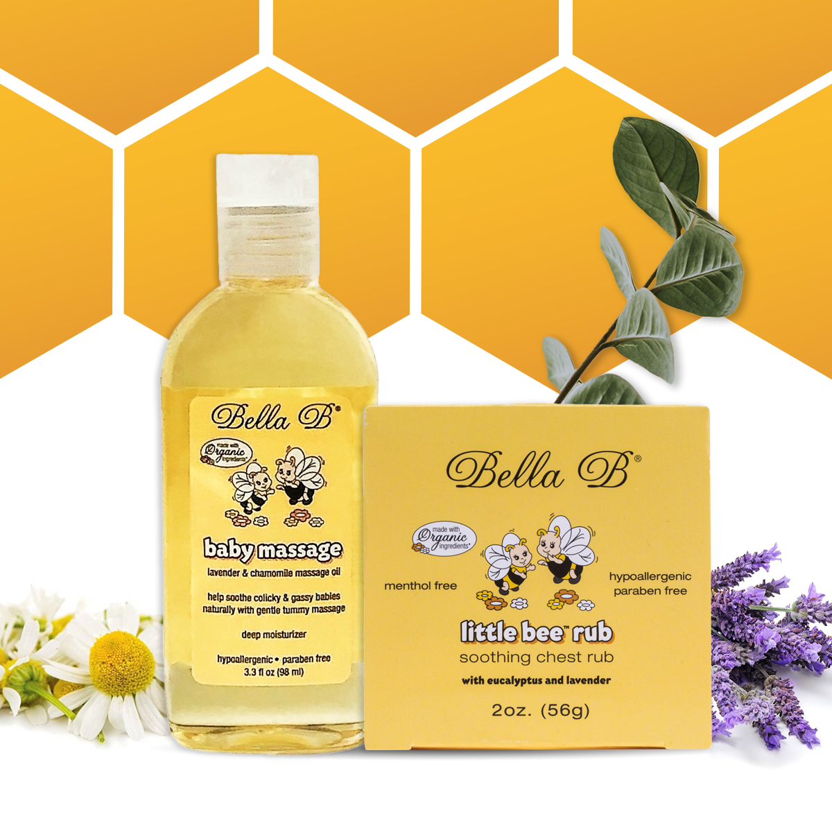 Bella B Gift Set - Little Bee Decongesting Chest Rub 2 oz and Baby Massage Oil 3.3 oz