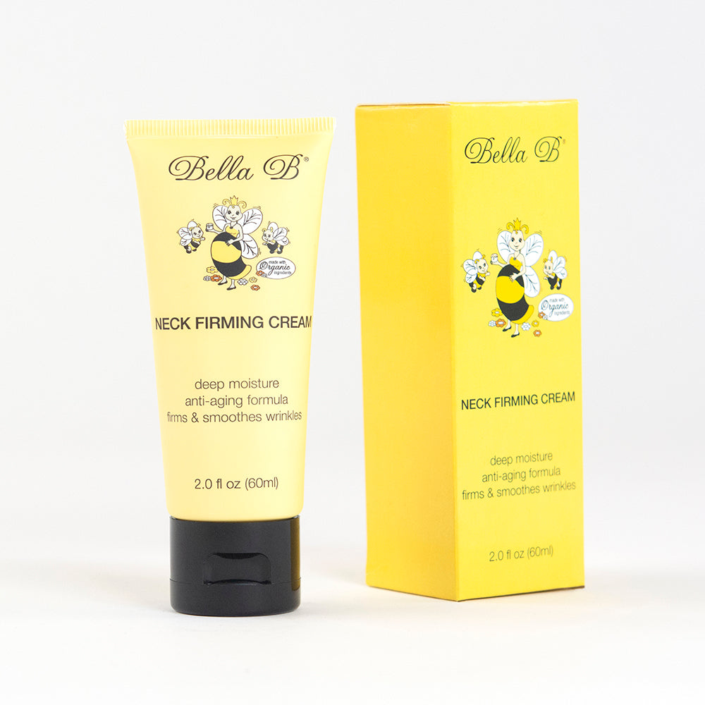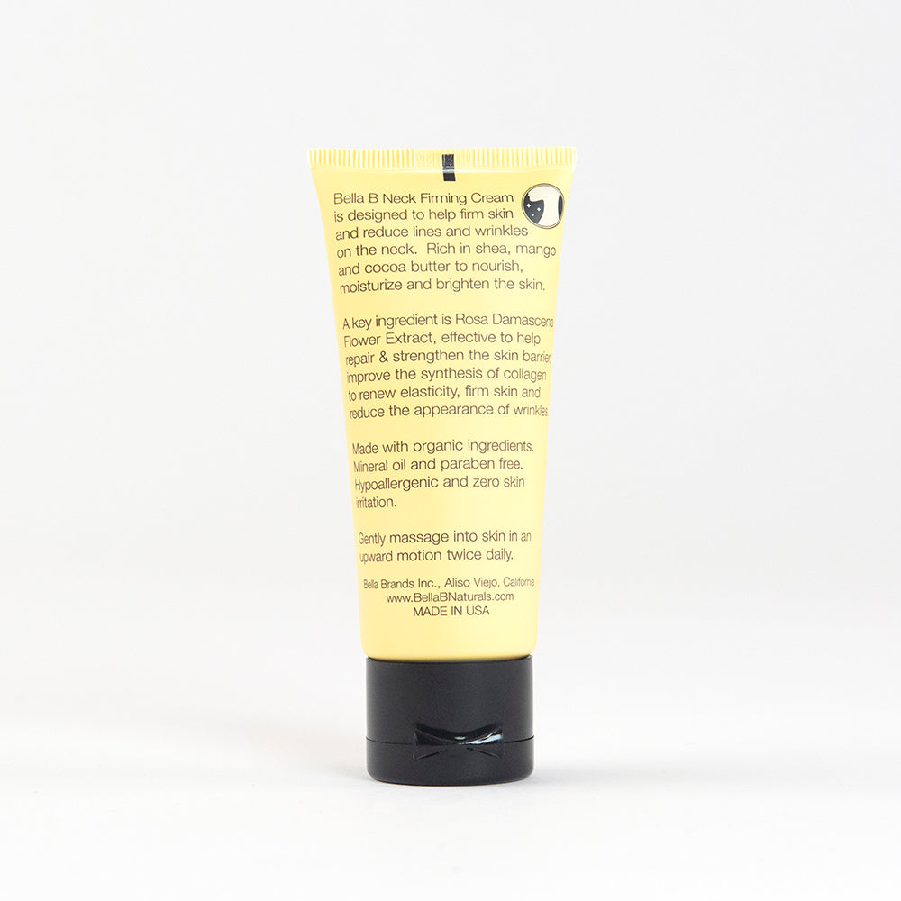 Bella B Neck Firming Cream is designed to help firm skin and reduce lines and wrinkles on the neck. Rich in shea, mango and cocoa butter to nourish, moisturize and brighten the skin. A key ingredient is Rosa Damascena Flower Extract, effective to help repair & strengthen the skin barrier, improve the synthesis of collagen to renew elasticity, firm skin and reduce the appearance of wrinkles. Made with organic ingredients. Mineral oil and paraben free. Hypoallergenic and zero skin irritation. Gently massage into skin in an upward motion twice daily.