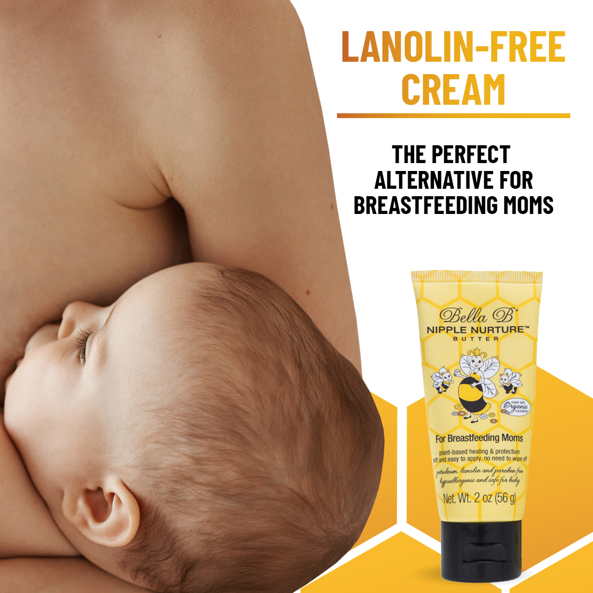 Free of petroleum, lanolin (comes from sheep's wool), and parabens (artificial preservatives), Nipple Nurture Butter uses plant based ingredients that are food-grade and 100% safe for mom and baby. We've chosen the very best natural ingredients including cocoa and shea butter that are combined to provide excellent soothing and healing properties, without using animal by-products. Use before and after breastfeeding to help prevent and soothe sore or cracked nipples.